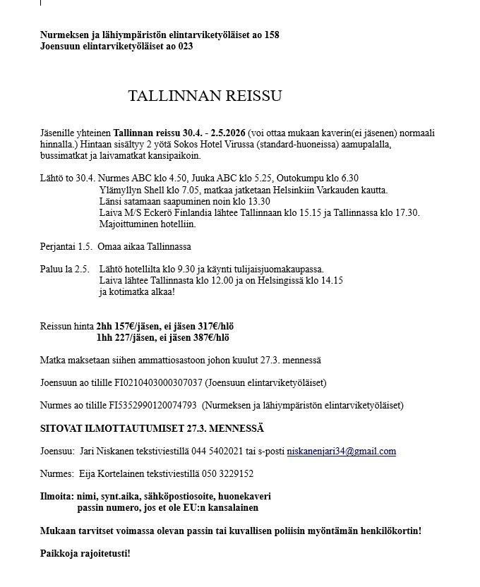 Tallinnan hotellimatka 30.4.-2.5.2026